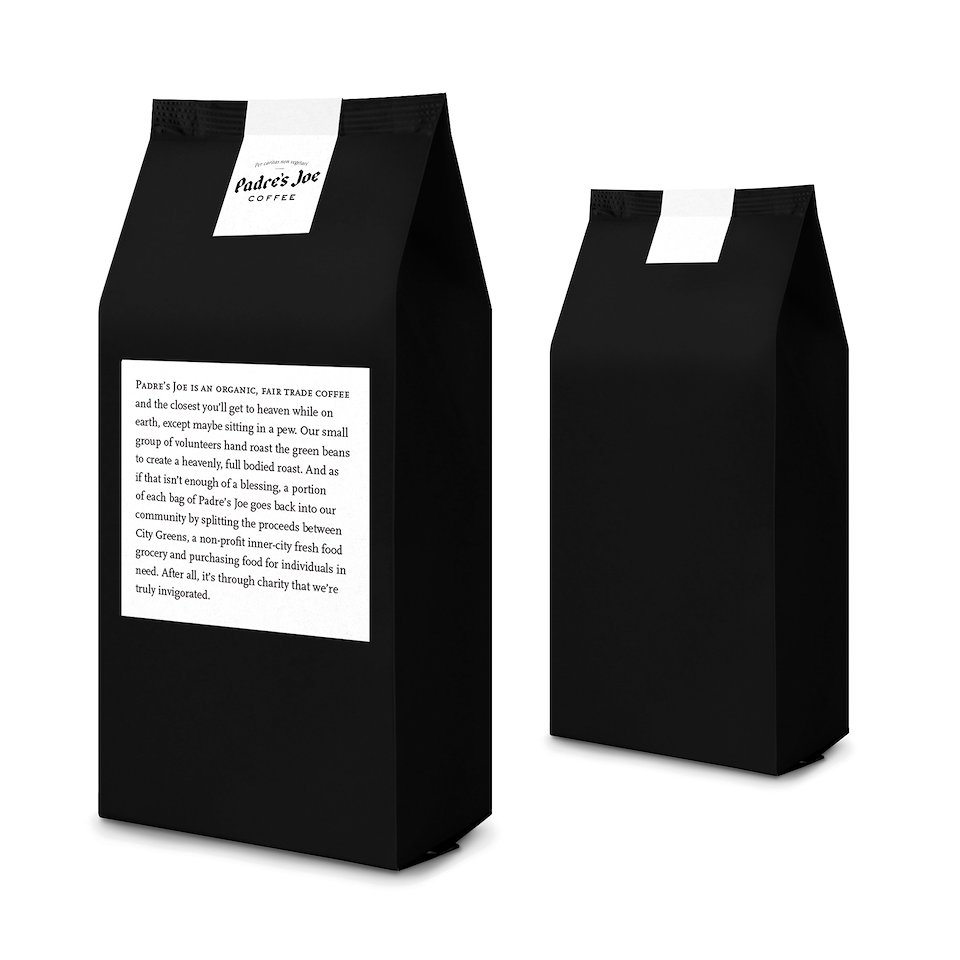 We landed a Pro-bono client. They needed branding for a Catholic themed coffee with strong ties to community service. We came up with two options for a name, tagline and branding for their coffee.